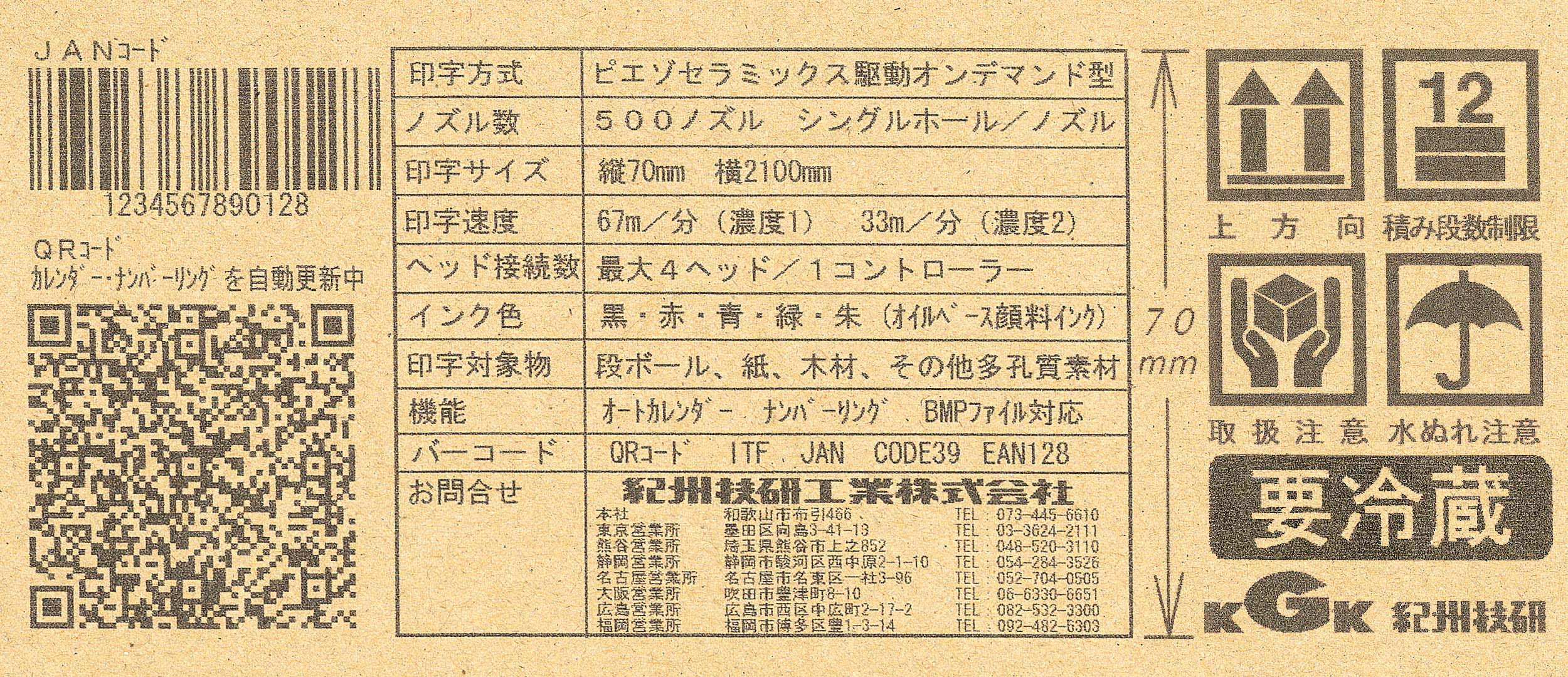 实现印字高度最高 108 mm。600dpi高解析度。UV 固化墨水对应。