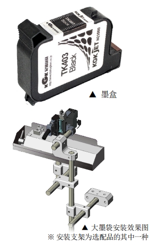 ・喷头可采用 300 点阵、600dpi 的喷嘴一体型墨盒,从而实现高质量印字。1 个喷头最大可喷印高度为 12.7mm。